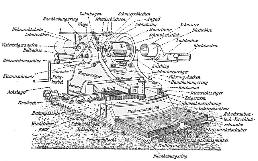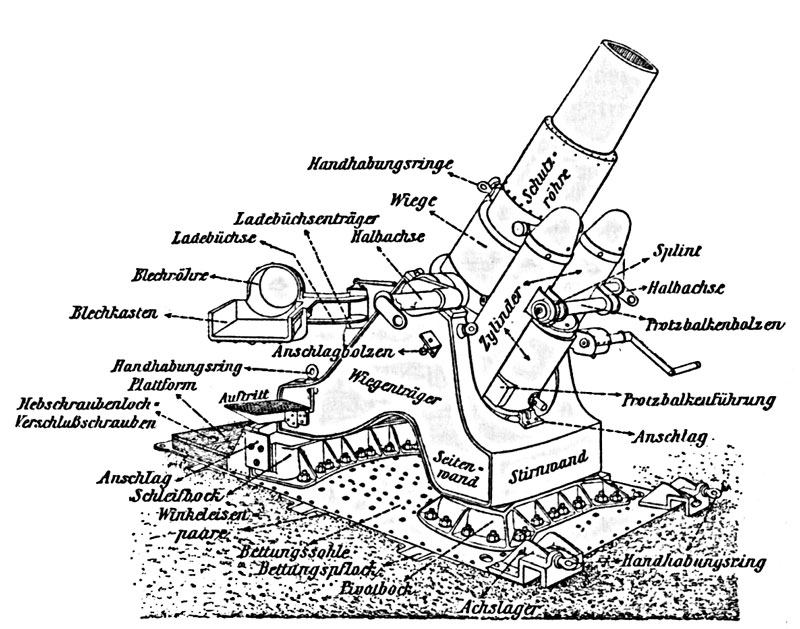 Telefonleitungen. Obwohl der 30,5 cm Mörser als Ersatz vorgesehen war, befanden sich 1914 bei Kriegsbeginn noch vierzehn dieser Mörser im aktiven Dienst. |